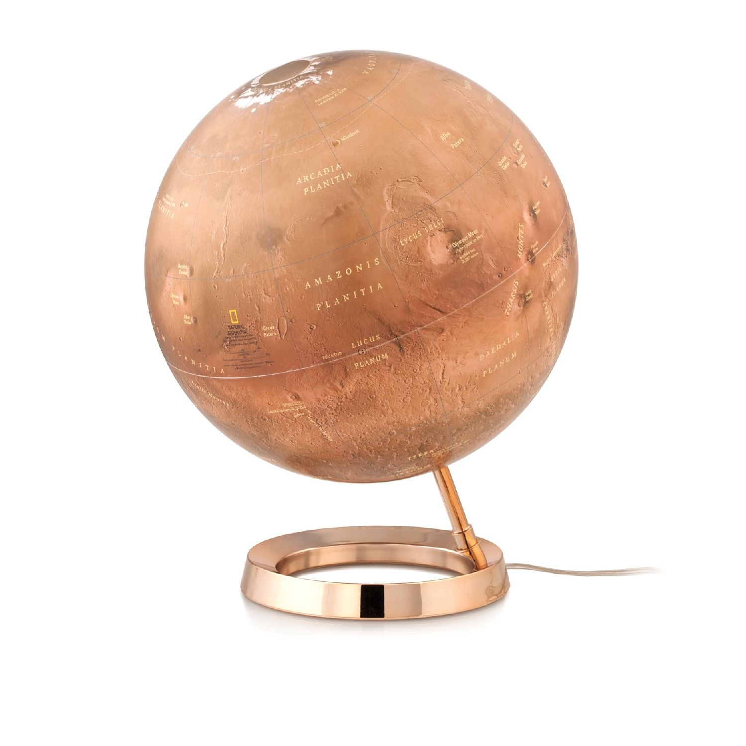 National Geographic Leuchtglobus Red Planet Mars-Globus mit 30 cm Durchmesser und kuperfarbenem FußDieser Leuchtglobus von National Geographic zeichnet sich durch Stil und einzigartiges Design aus.Die Kugel in der Gestalt des Planeten Mars hat einem Durchmesser von 30 cm.