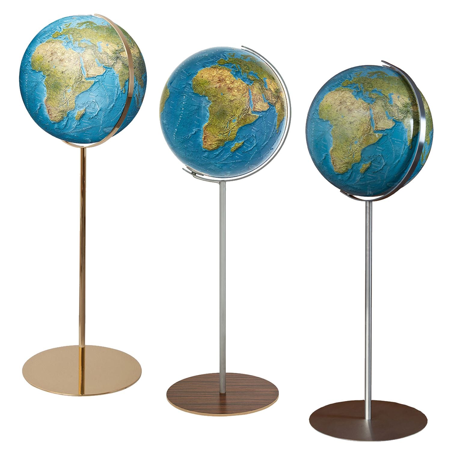 Columbus Duorama Standglobus, D 400 mm, Leuchtglobus, verschiedene Varianten - Messing oder EdelstahlDas vegetationsgeografische Kartenbild des DUORAMA Standglobusses, zeigt Ihnen im unbeleuchteten Zustand den Blick auf die Erde, in nie da gewesener Plastizität. Durch das handgezeichnete hochfein gedruckte Relief entsteht ein dreidimensionaler Eindruck bis in die Tiefen des Meeres. Beleuchtet ergänzt sich in feinen Linien die politische Differenzierung der Erde, die topografische Sicht bleibt erhalten. Die Ländergrenzen fügen sich dabei ganz dezent in die vegetationsgeografische Darstellung mit Meerestiefen, Wüstenlandschaften und grünen Waldflächen ein.