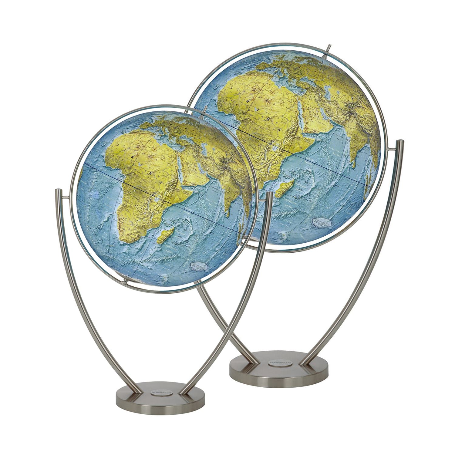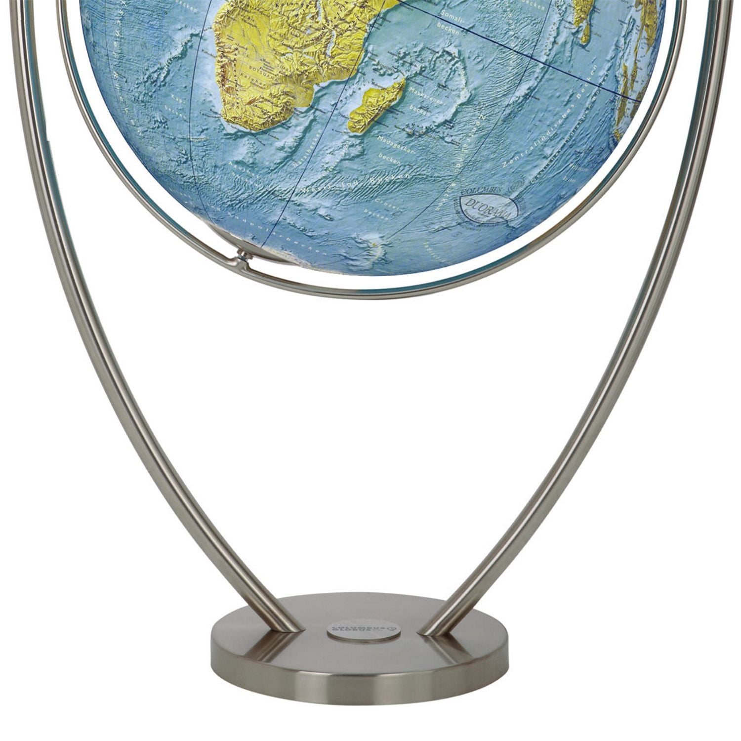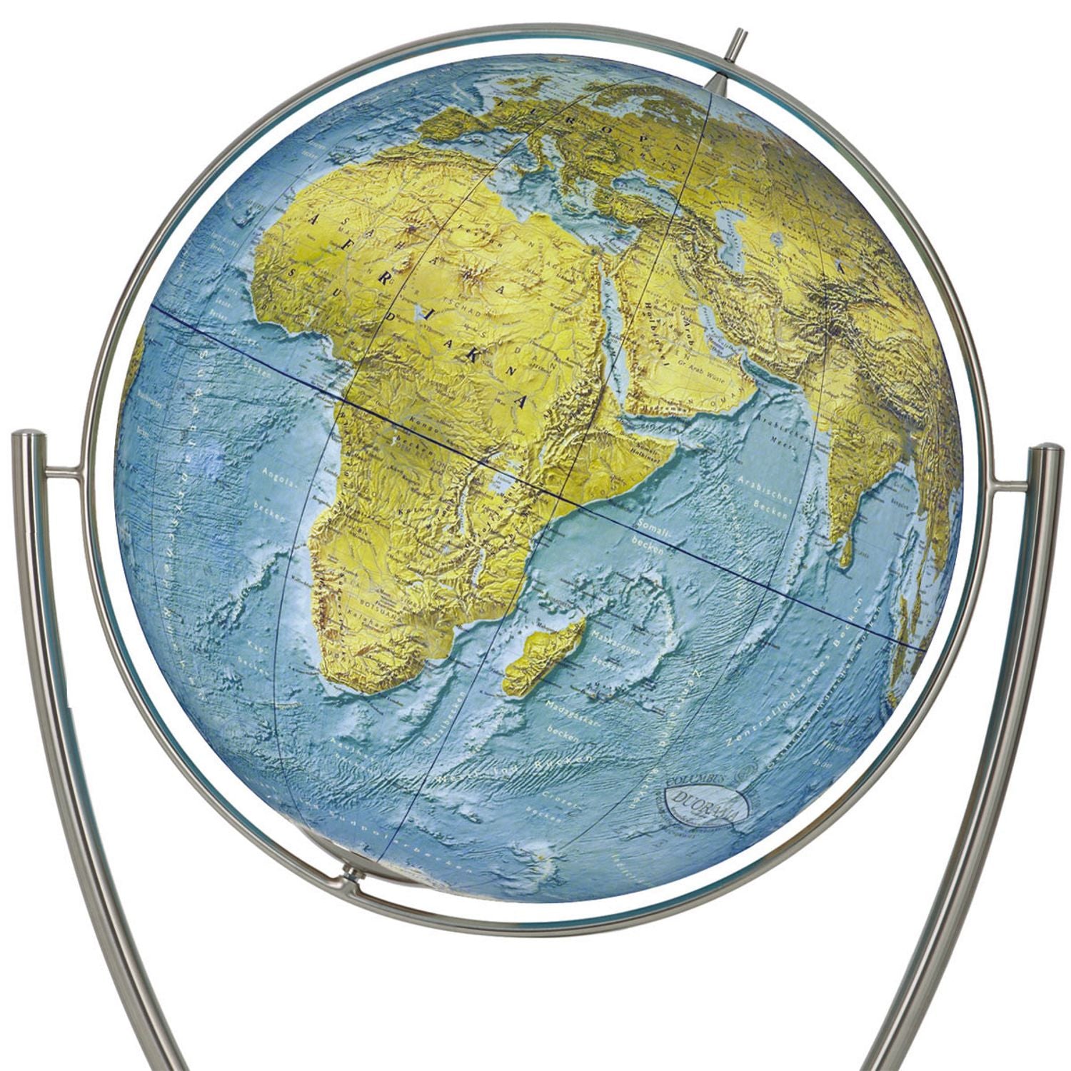 Columbus DUORAMA Großglobus Standglobus mit großer Weltkugel, Beleuchtung und Edelstahl-Gabelfuß, verschiedene GrößenDie stattliche Größe und die schlichte Eleganz machen diesen Globus zu etwas ganz Besonderem. Dank des aufwendig gestalteten Kartenbilds und dem großen Durchmesser, lässt der große Standglobus auch noch die Entdeckung der kleinsten Details unseres blauen Planeten zu. Mit seinem großen Kugelumfang zeigt dieser COLUMBUS Globus die vegetationsgeographische Ansicht unserer Erde.