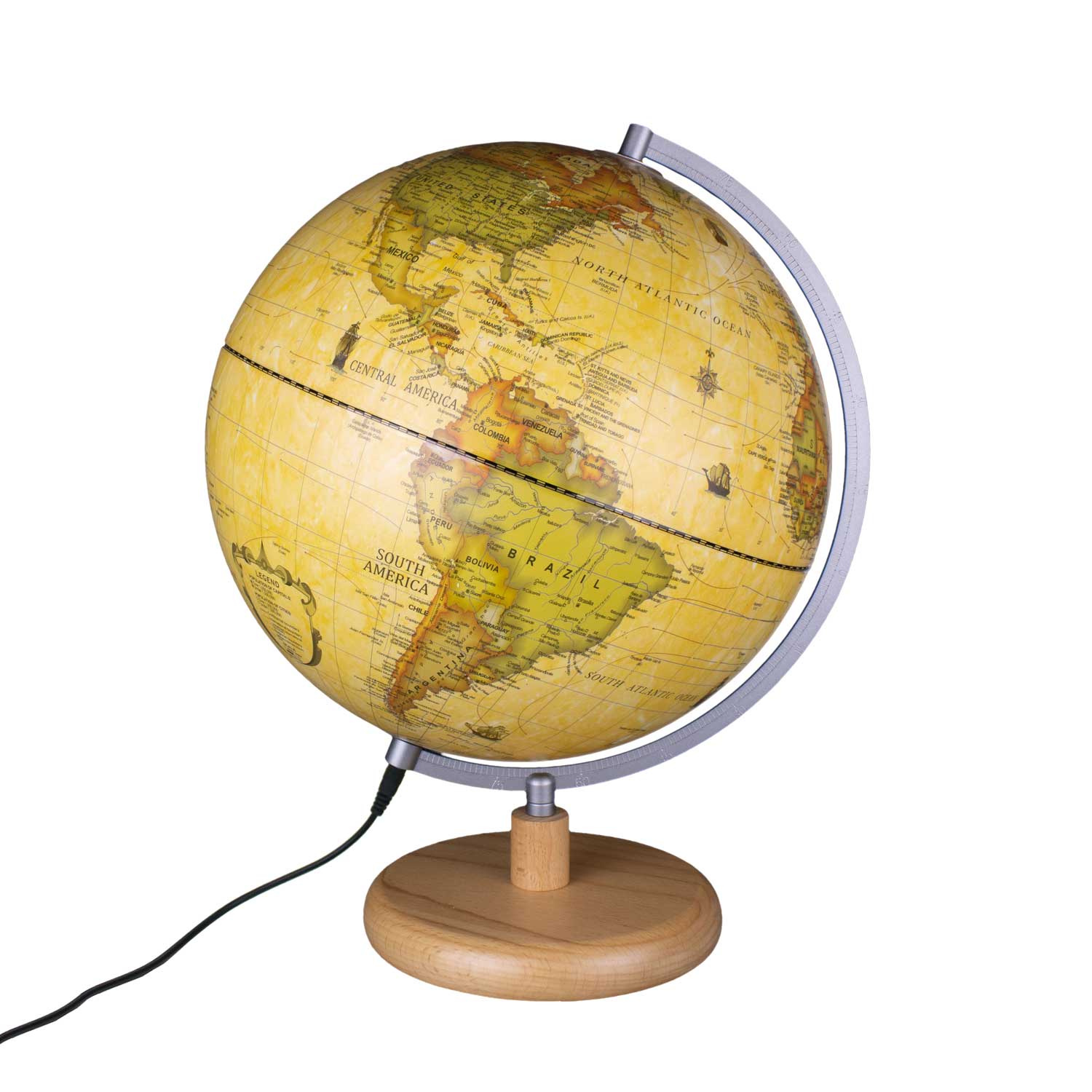 Im Inneren befindet sich energieeffiziente LED-Technik welche bei Bedarf für eine angenehme, passive Beleuchtung der Erdkugel sorgt.