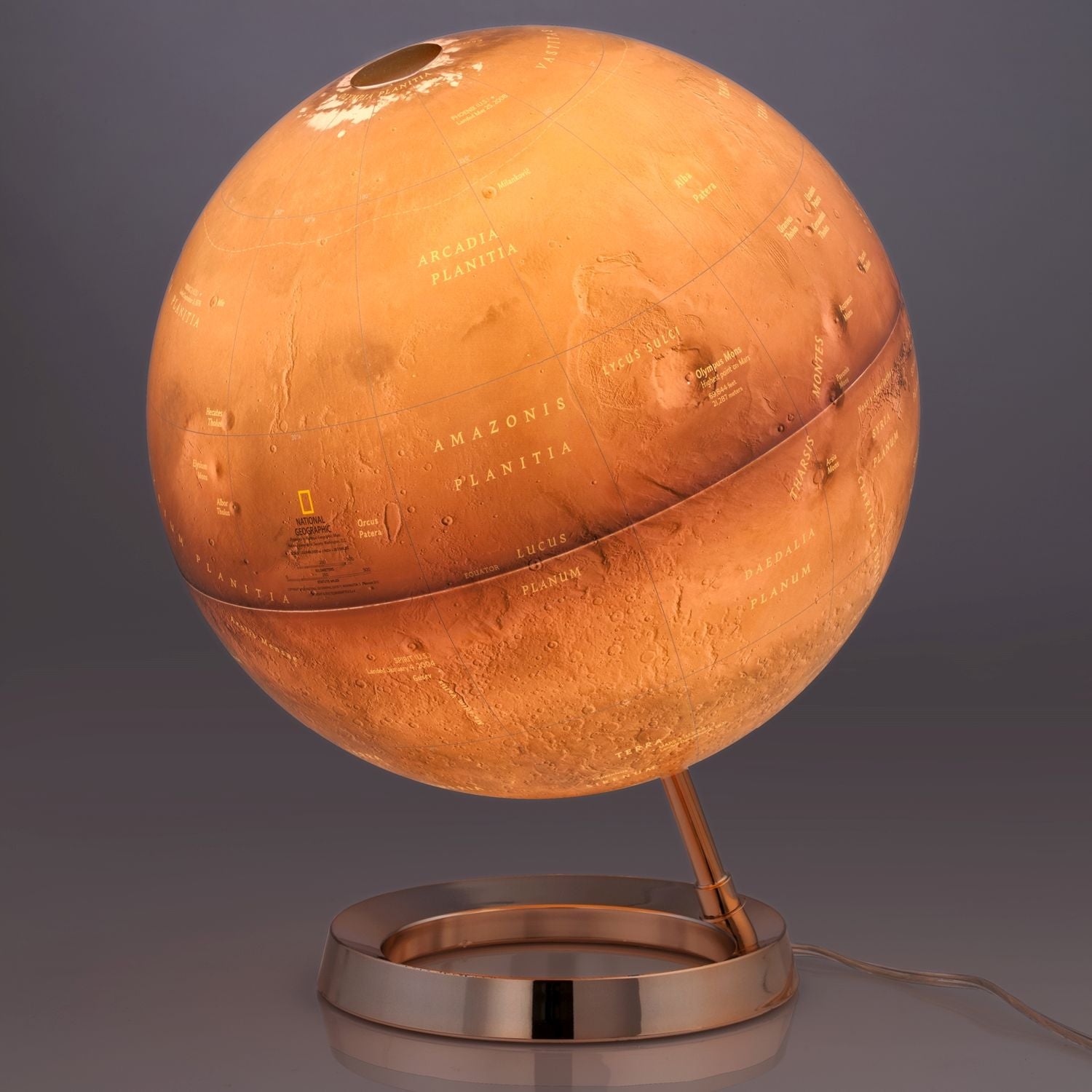 National Geographic Leuchtglobus Red Planet Mars-Globus mit 30 cm Durchmesser und kuperfarbenem Fuß